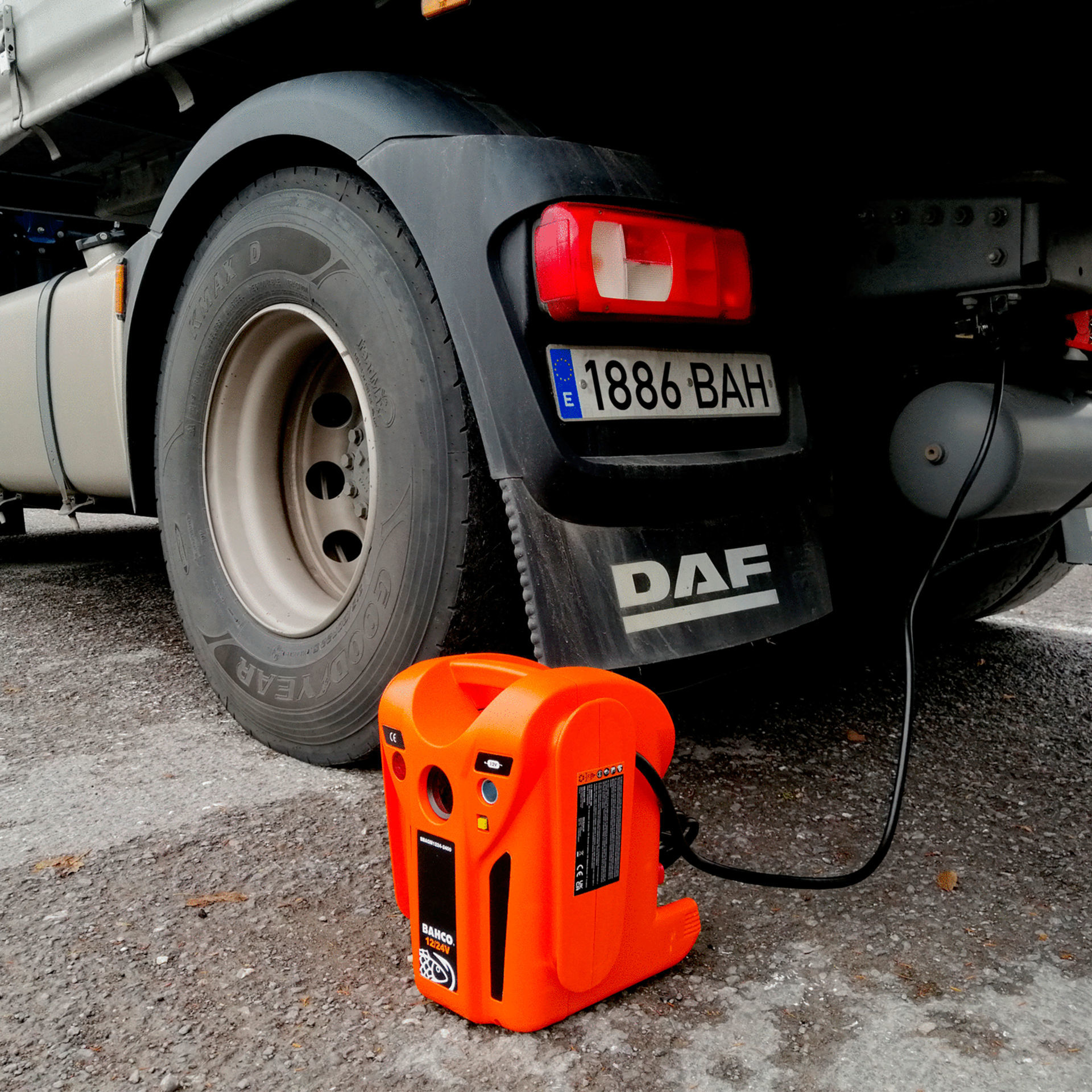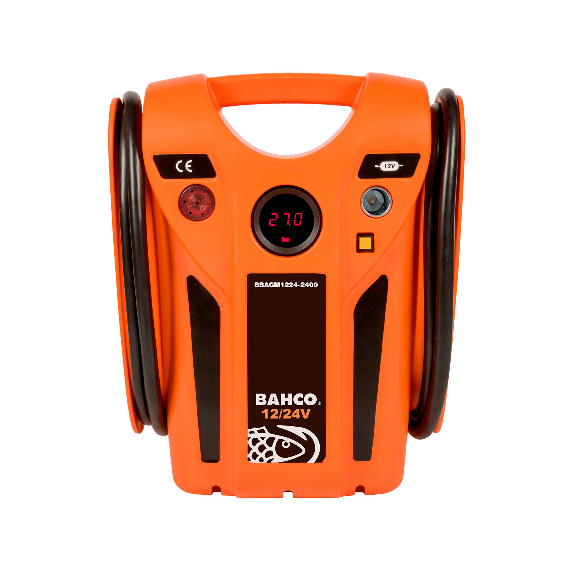 Booster profesional portátil de alto rendimiento diseñado para vehículos y sistemas eléctricos de 12/24 V con una capacidad de 2.400/1.200 amperios de arranque.