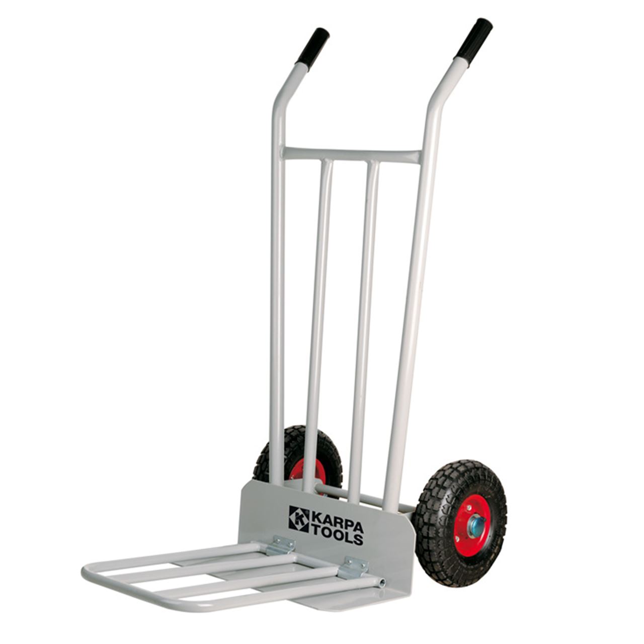 Carretilla industrial con ruedas neumáticas con rodamientos y pala abatible.