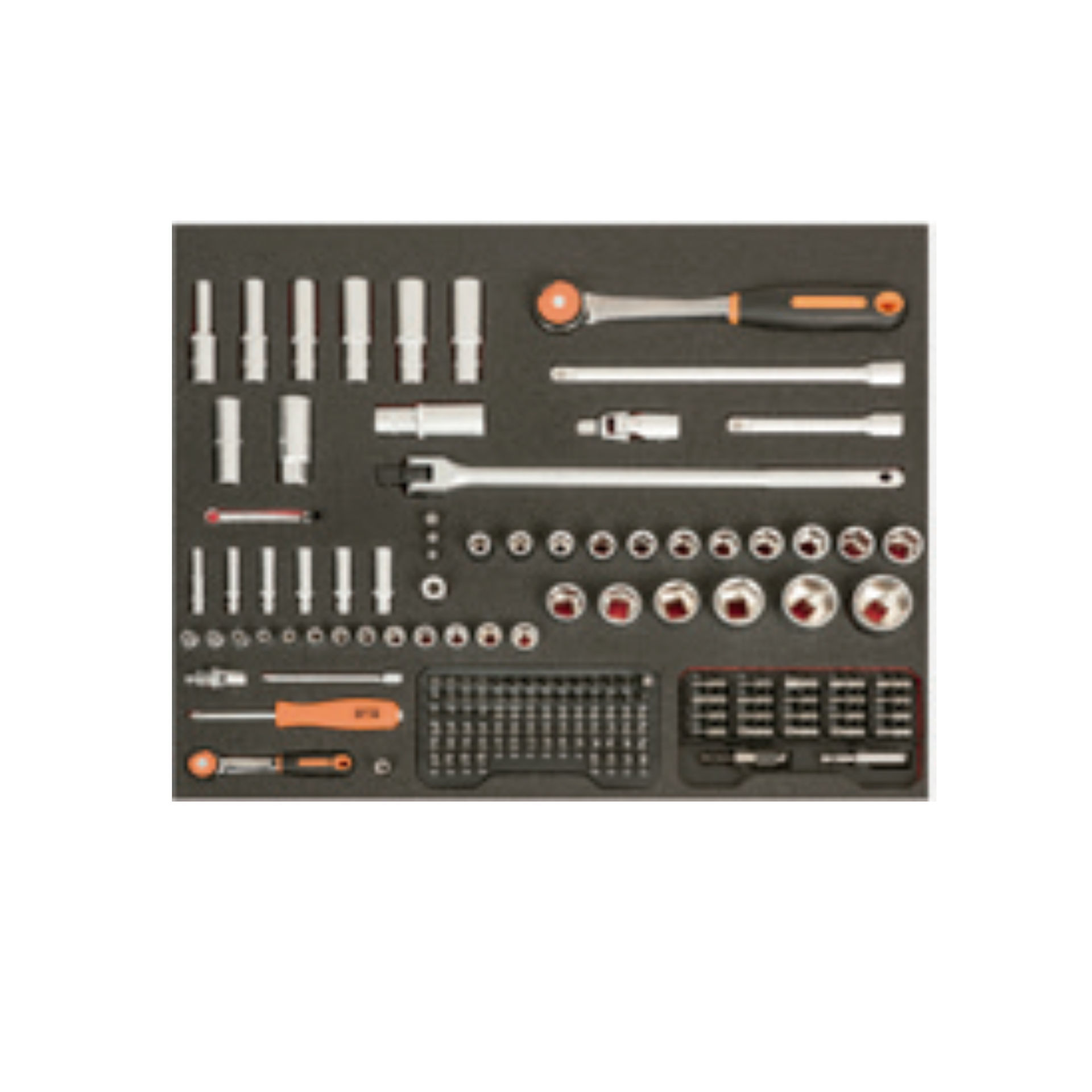 Bandeja de 159 piezas. Bandeja de juegos de vasos y accesorios de ¼” y ½” y puntas de ¼”.