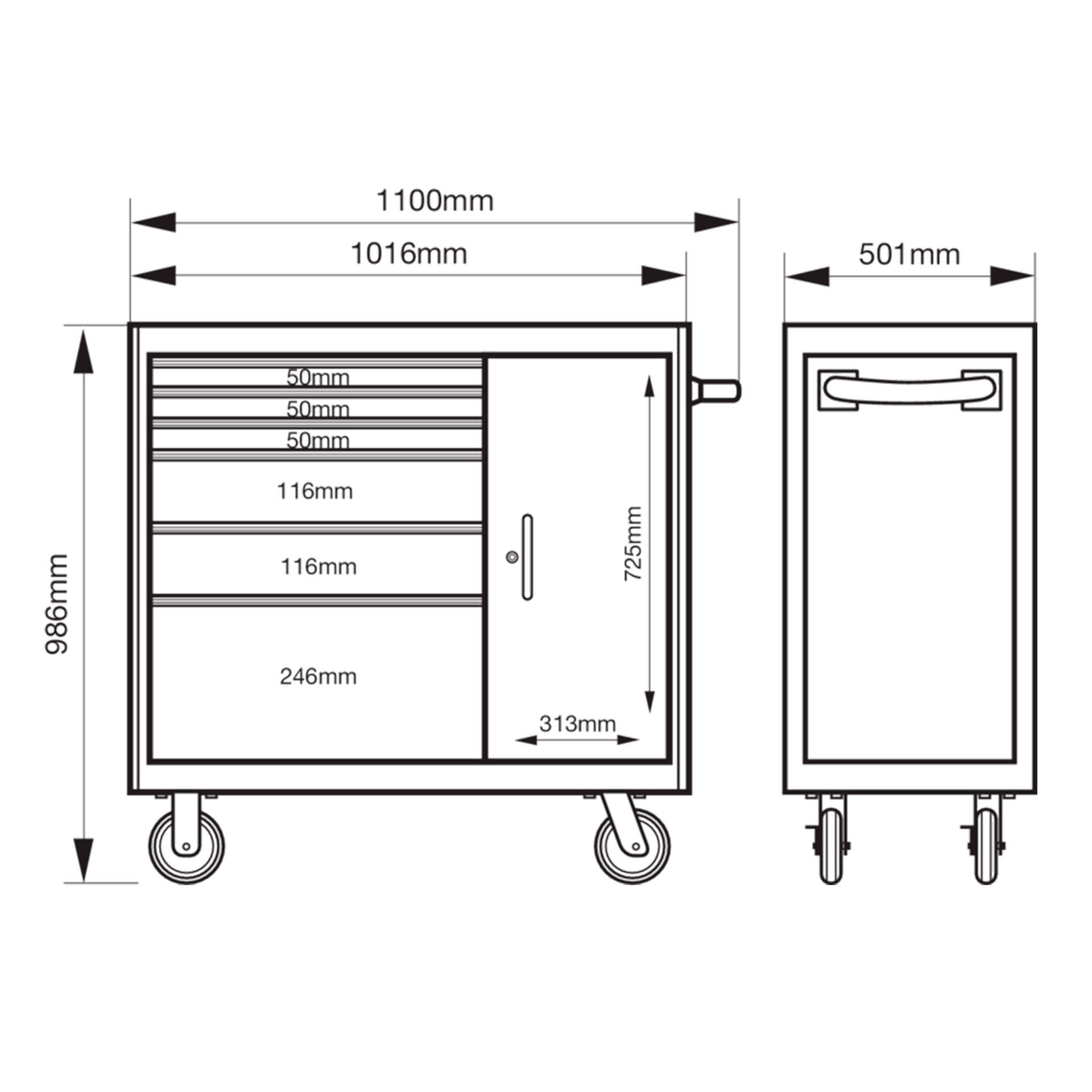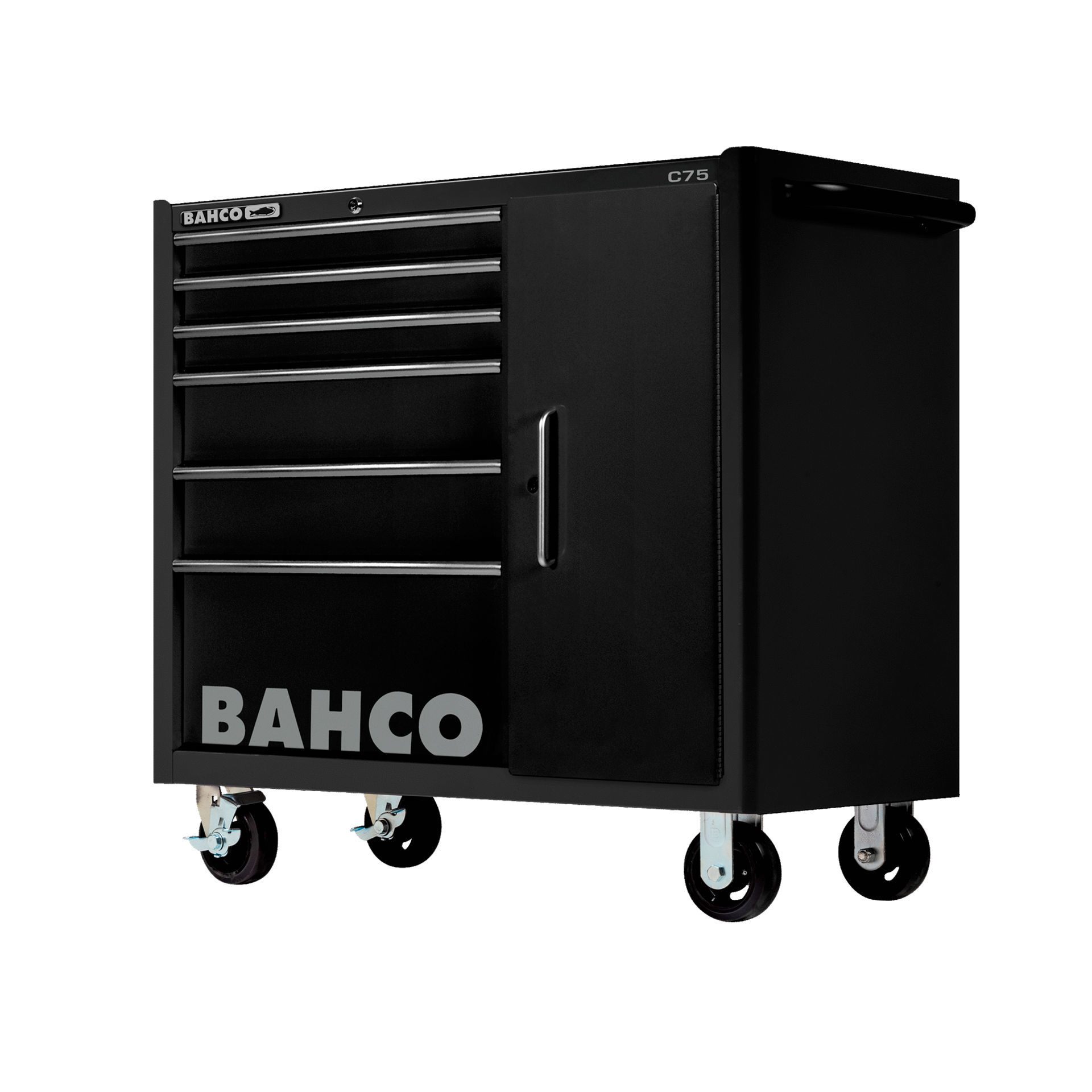 Carro de taller Bahco XL de alta capacidad con 6 cajones y armario, equipado con 223 herramientas profesionales. Diseñado para organizar, proteger y facilitar el trabajo en talleres mecánicos, industriales o profesionales del mantenimiento.
