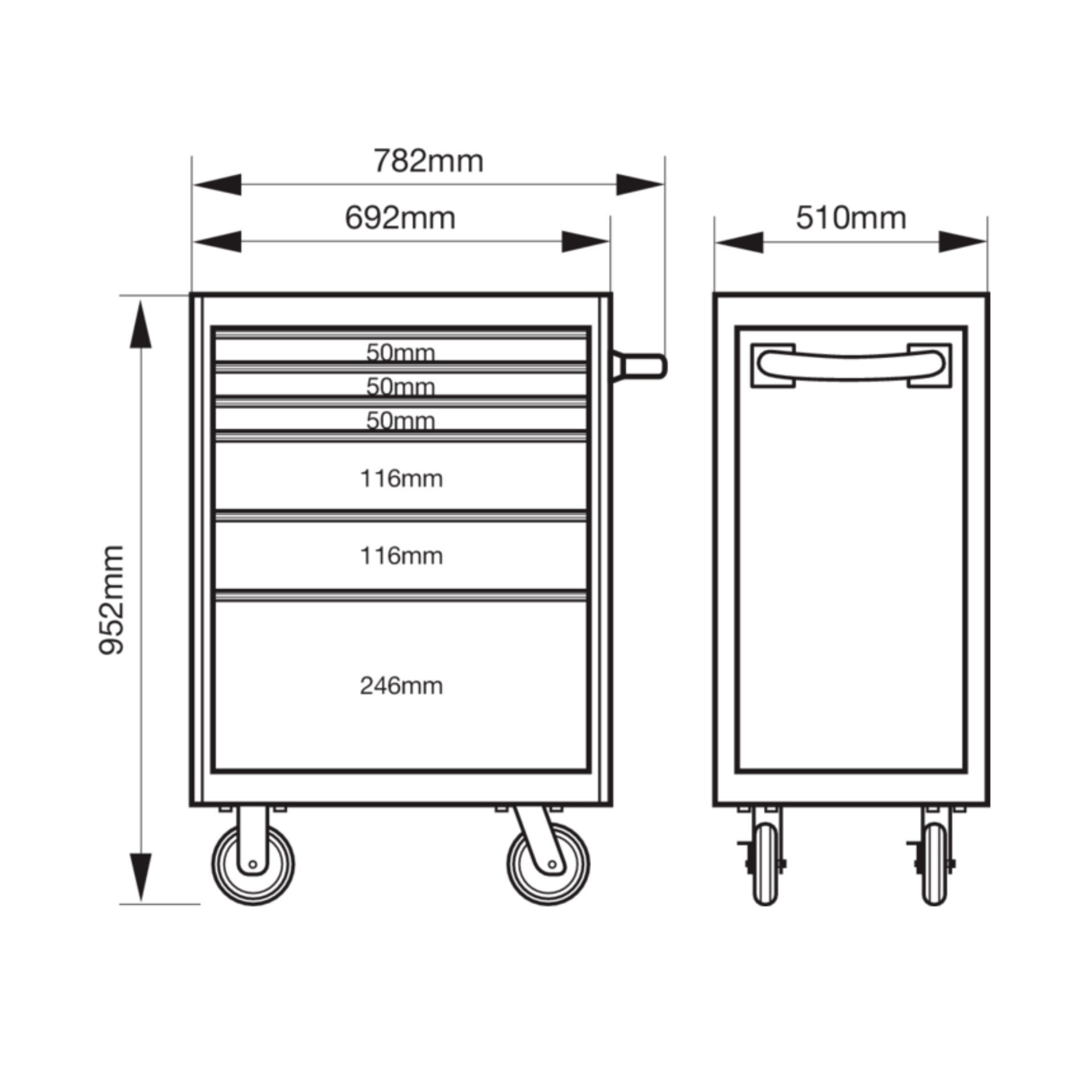 Carro de herramientas profesional Bahco con 6 cajones con ruedas, diseñado para organizar y equipar talleres mecánicos, industriales o de mantenimiento con herramientas de alto rendimiento.