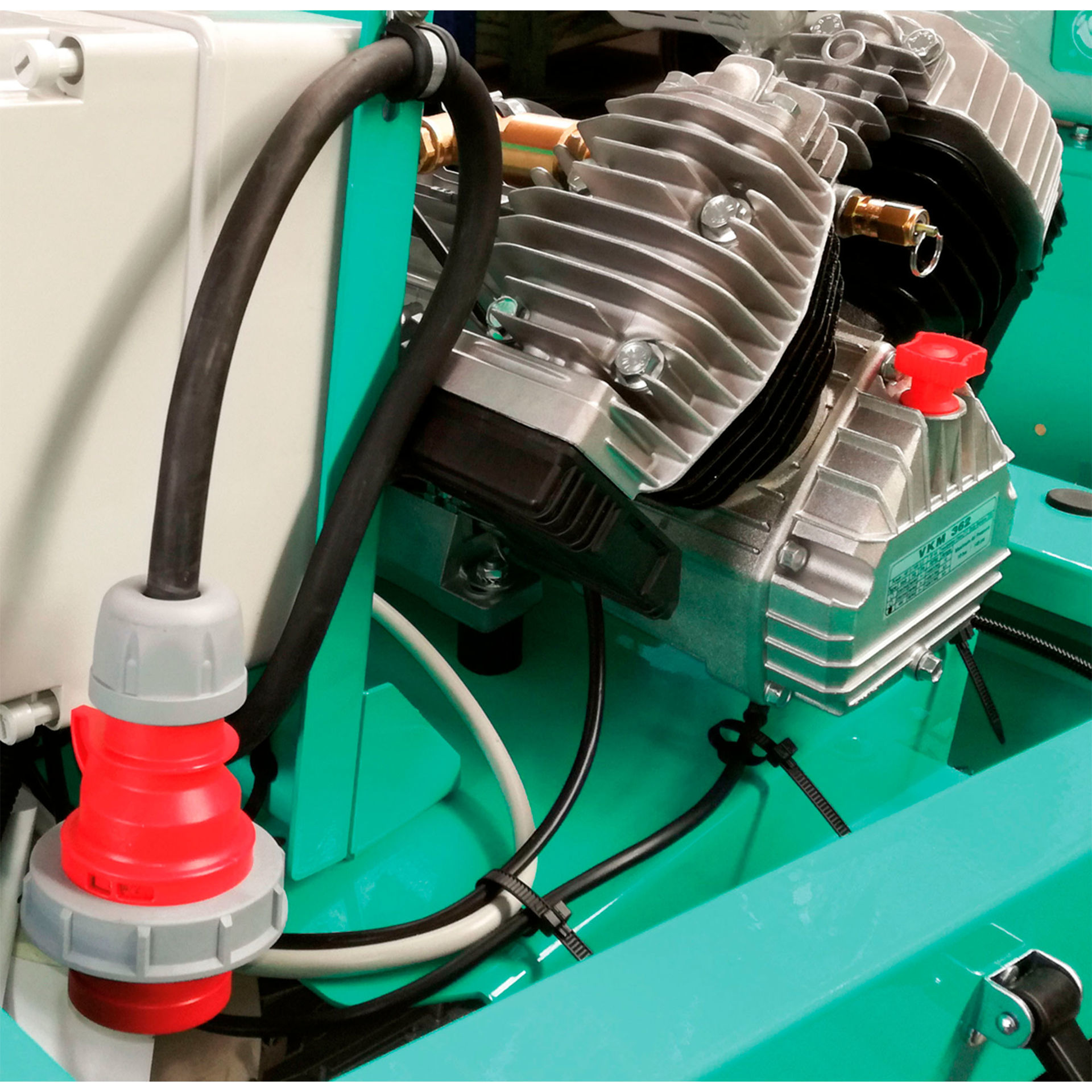 Incluye: 20 metros de manguera eléctric, 20 metros de manguera para materiales Ø 35 mm interior, con acoplamiento rápido, 10 metros de manguera para materiales Ø 35 mm interior, con acoplamiento rápido, 20 metros de manguera para el aire Ø 13 mm interior, con acoplamiento rápido, 16 metros de manguera para el aire Ø 13 mm interior, con acoplamiento rápido ,gancho para inyección de manguera sobre andamios, caja de accesorios con proyector, tobera Ø 14 mm y bola de esponja.