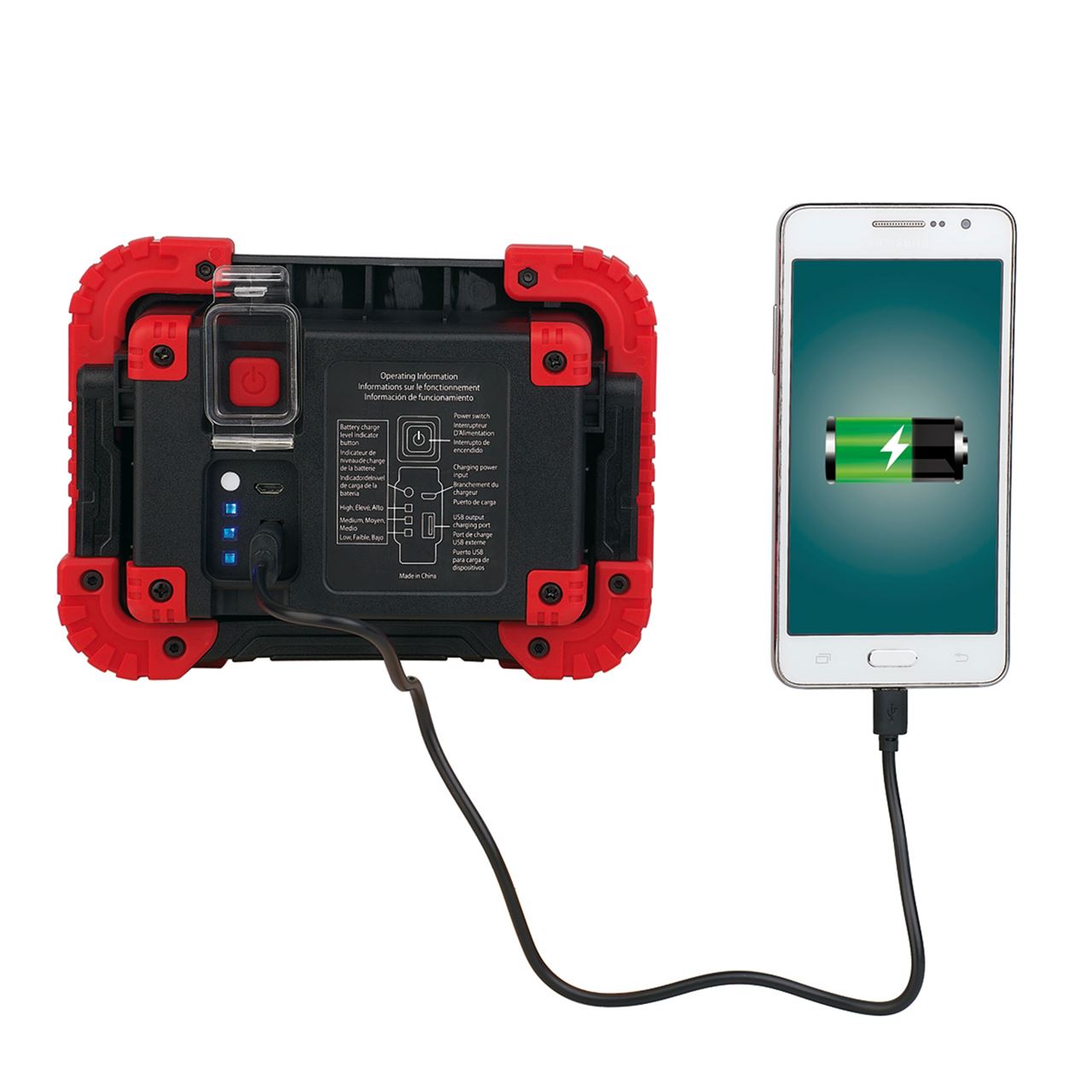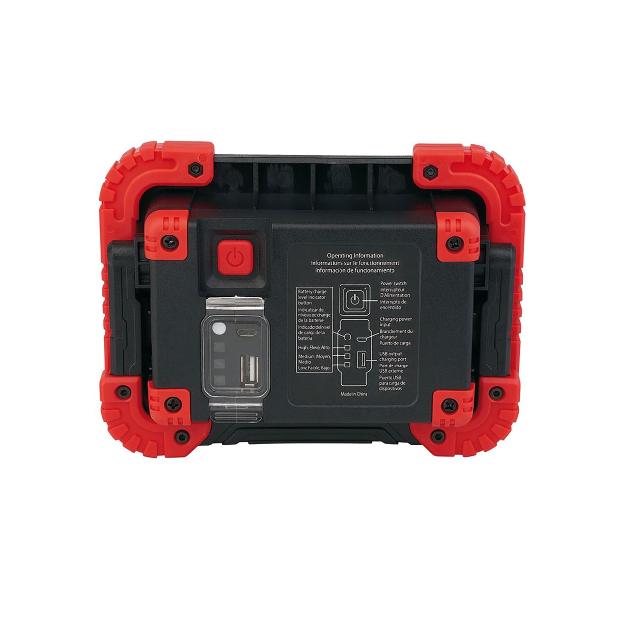 Proyector portátil de aleación de ABS + aluminio, con led COB 10W recargable por USB. Flujo de luz 800 lúmenes.