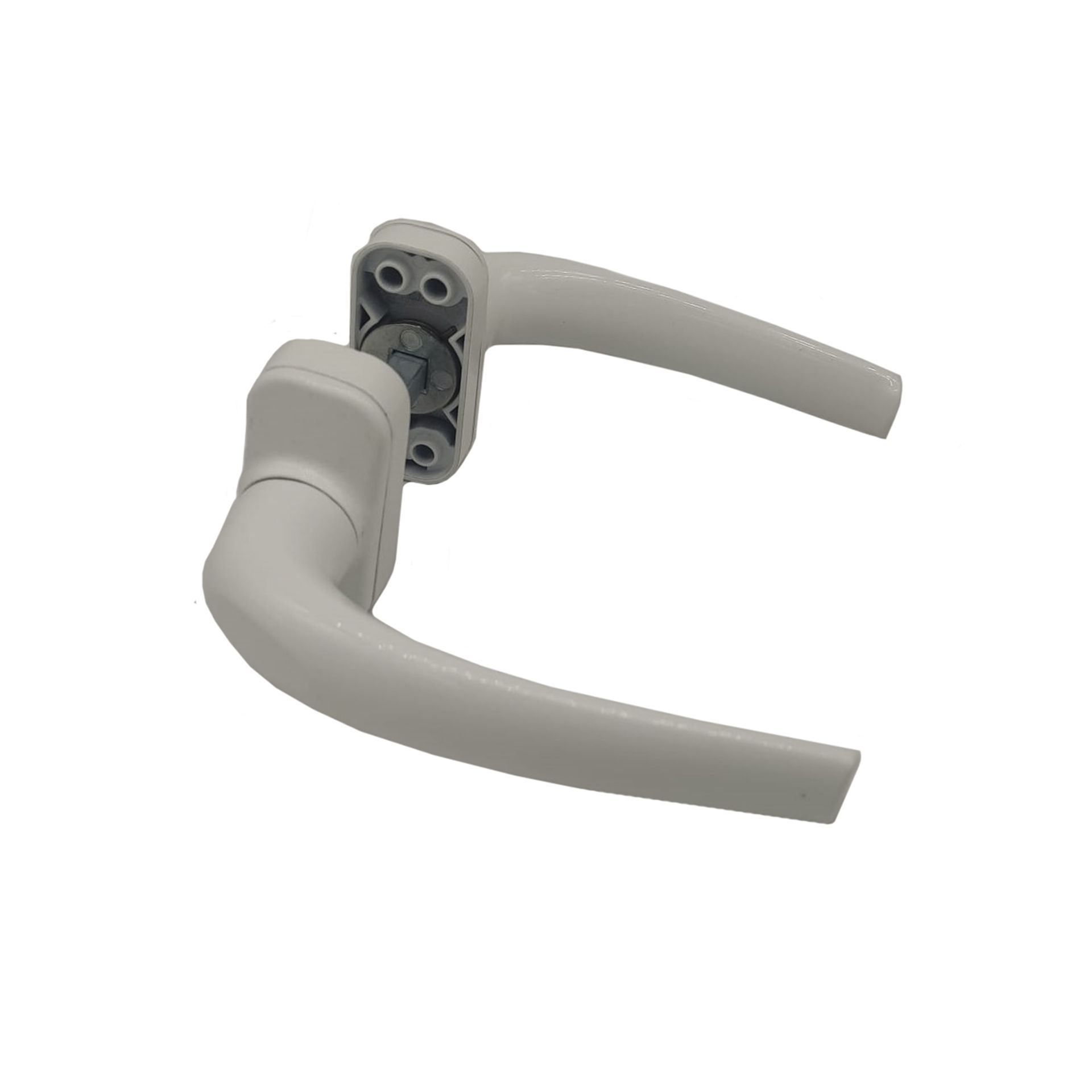 Maneta aluminio con escudo ovalado con cuadradillo de 8x8 para abrir, cerrar y asegurar puertas.