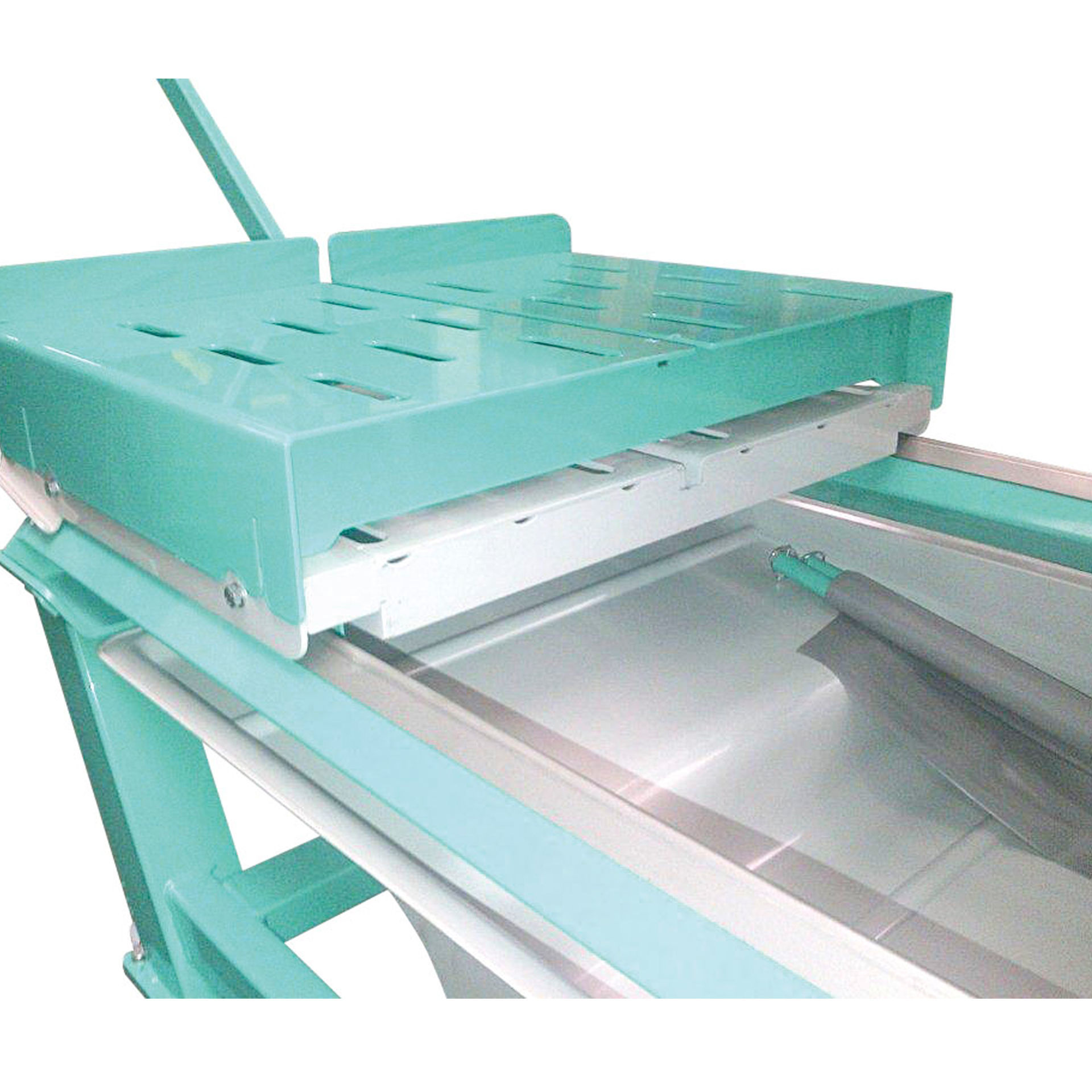 Provista de resistentes e higiénicas bandejas de PVC con decantadores para los sedimentos, para que el agua llegue lo más limpia posible a la poza donde está colocada la bomba eléctrica.