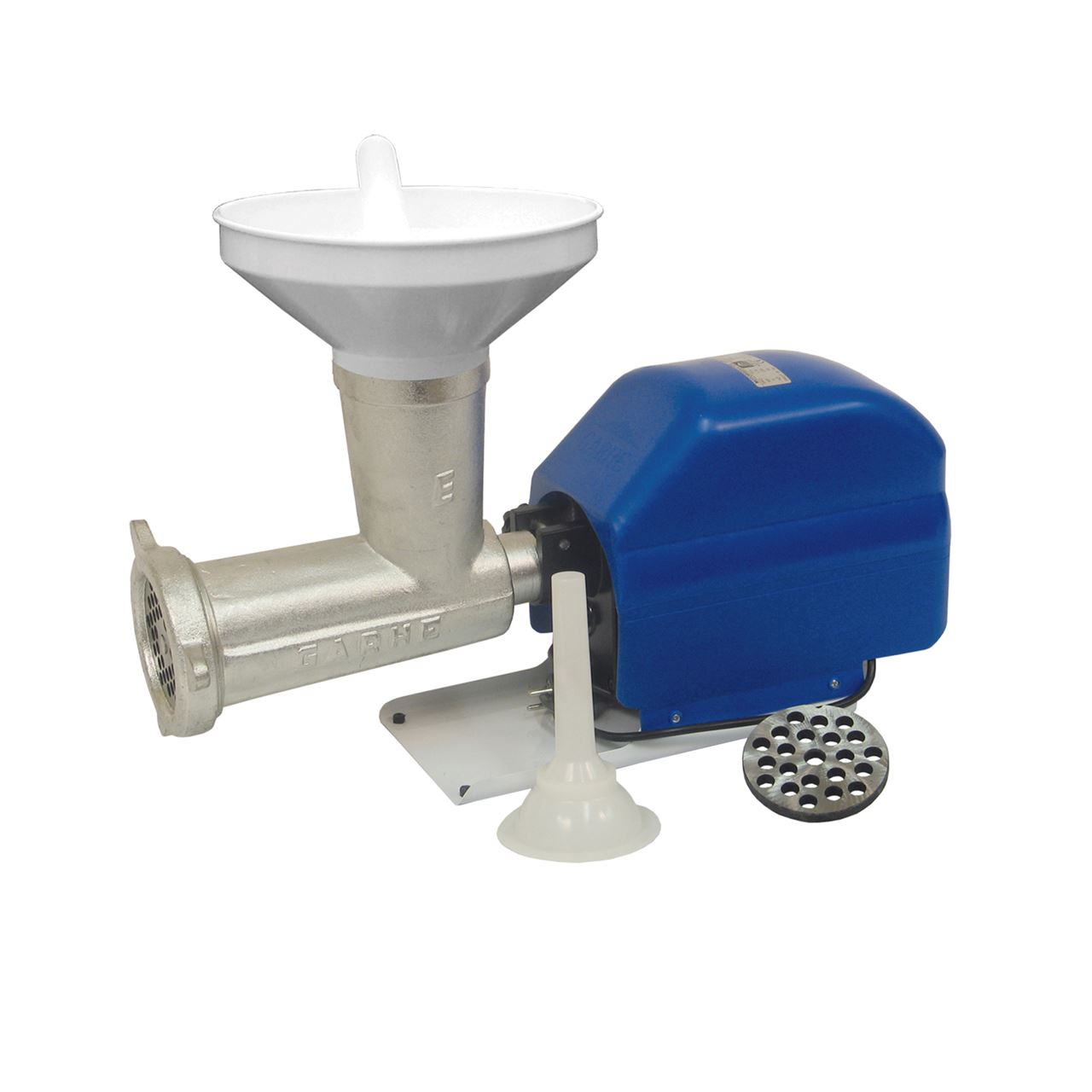 Picadora embutidora eléctrica de carne con motor GR10 de 2 HP y 120 r.p.m para picar y embutir.