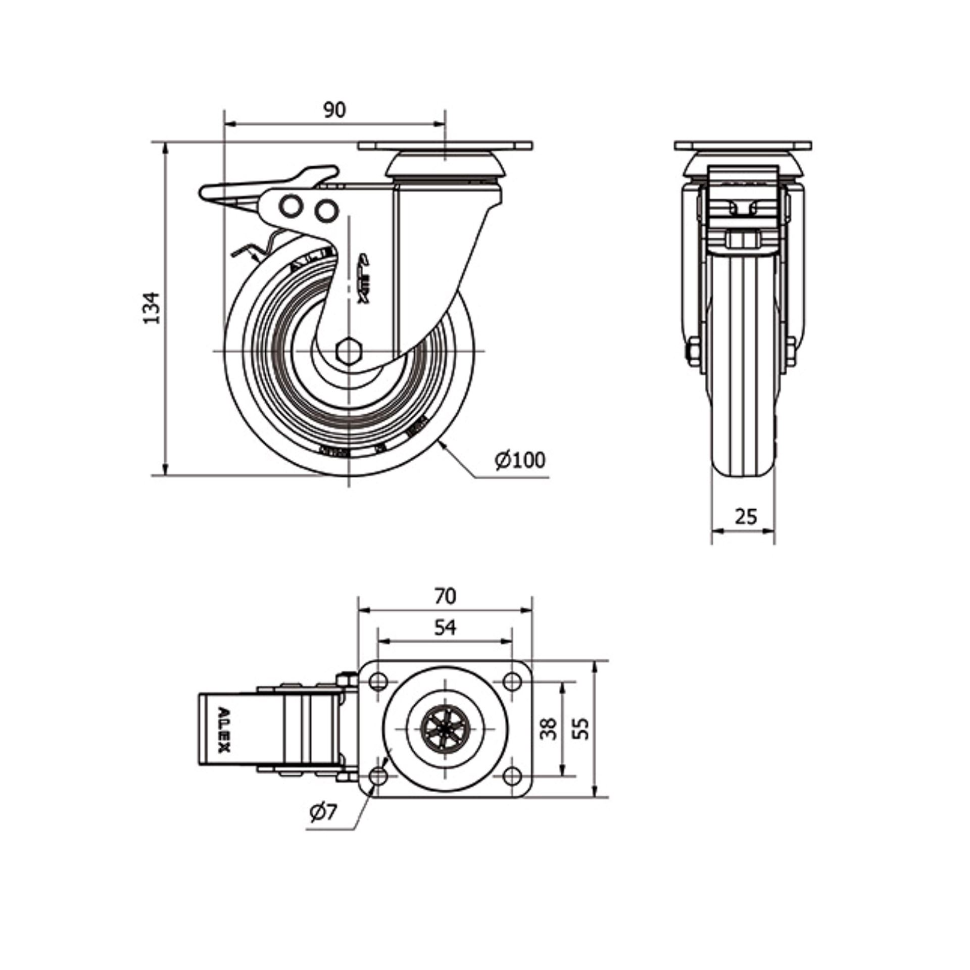 Rueda giratoria goma 100 mm 70 Kg Alex BH-PGI