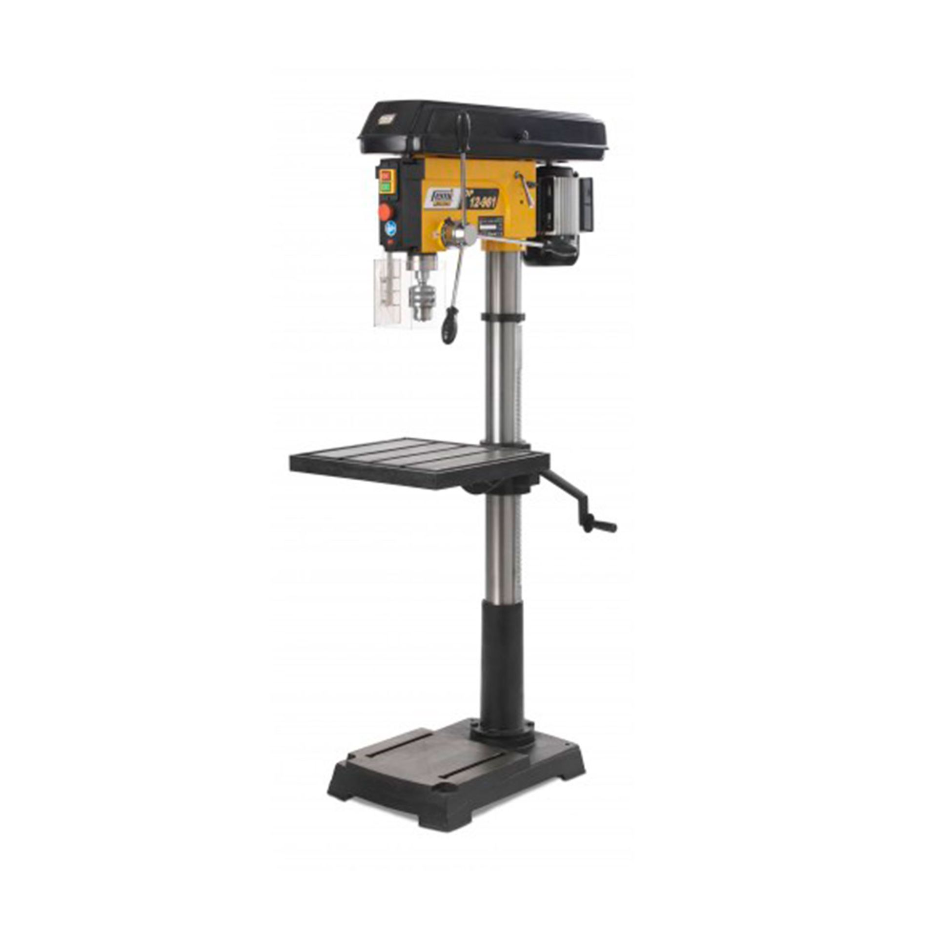 Taladro de columna FEMI FM12-961PLUS con motor de 1100 W, 12 velocidades, portabrocas de 3 a 20 mm, mesa inclinable y mordaza incluida.
