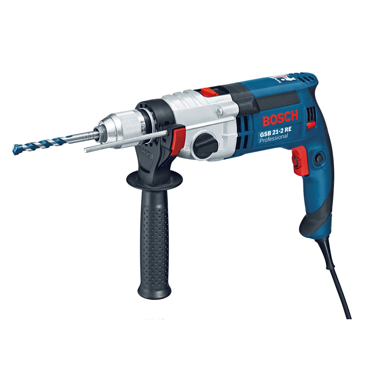 Empuñadura de seguridad con innovadora sujeción para un correcto agarre de la máquina. Escobillas giratorias para garantizar una potencia de giro homogénea tanto a derecha como a izquierda. Ø del cuello del husillo de 43 mm (Norma europea), que se puede utilizar con soporte para taladros.