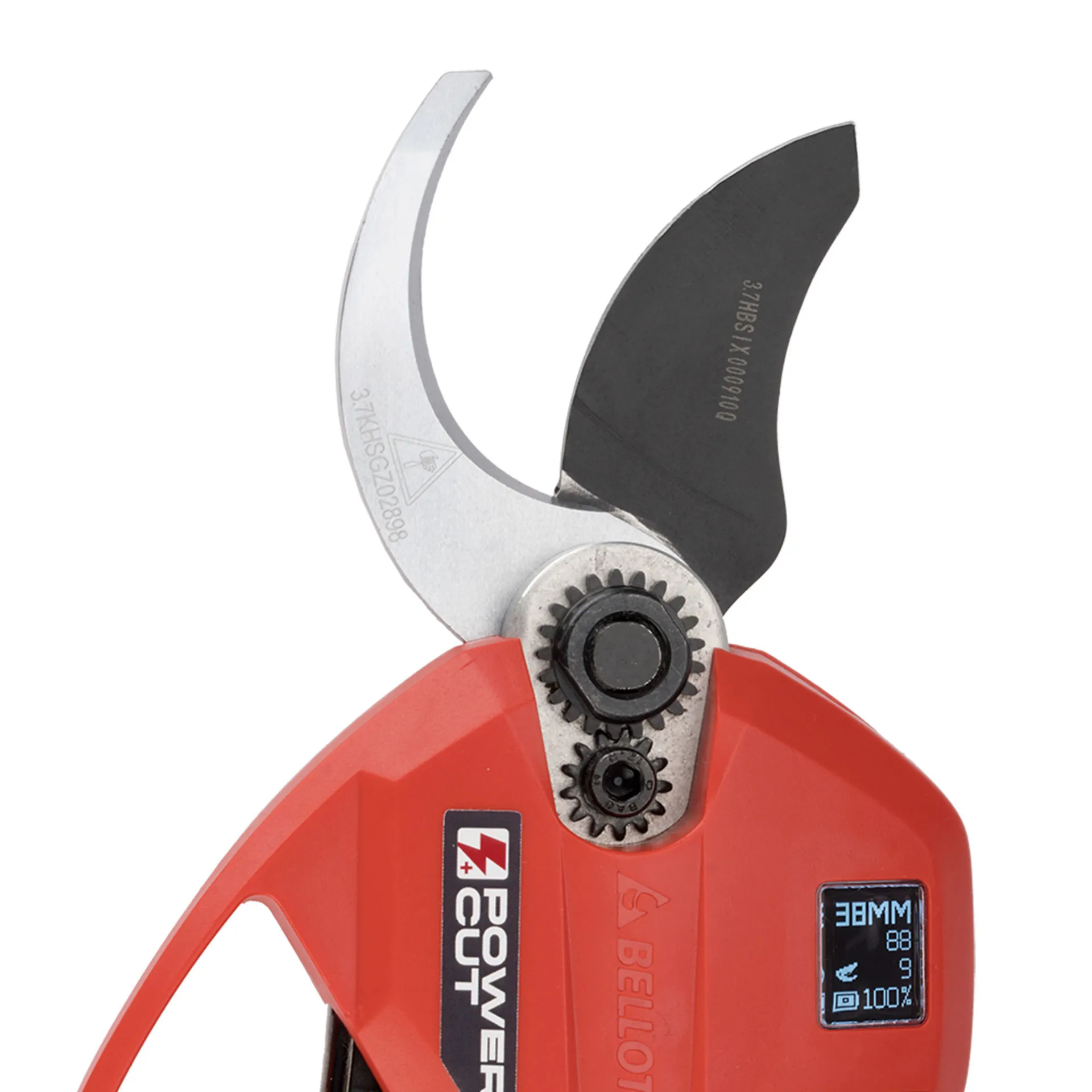 Tijera de poda eléctrica POWER CUT con batería de Litio Ion y un corte máximo de 38 mm de diámetro.