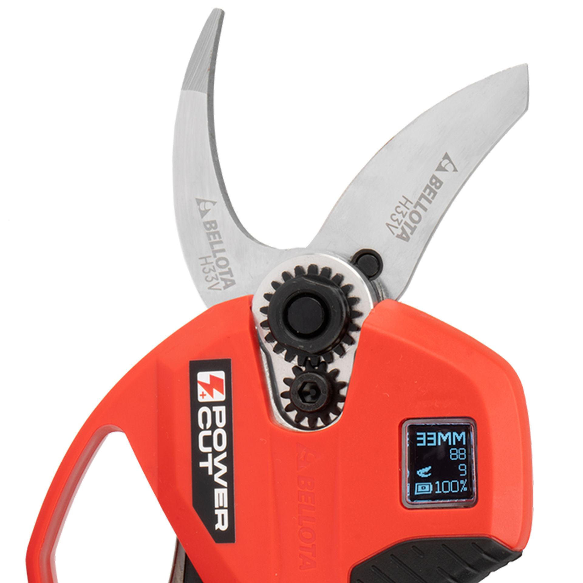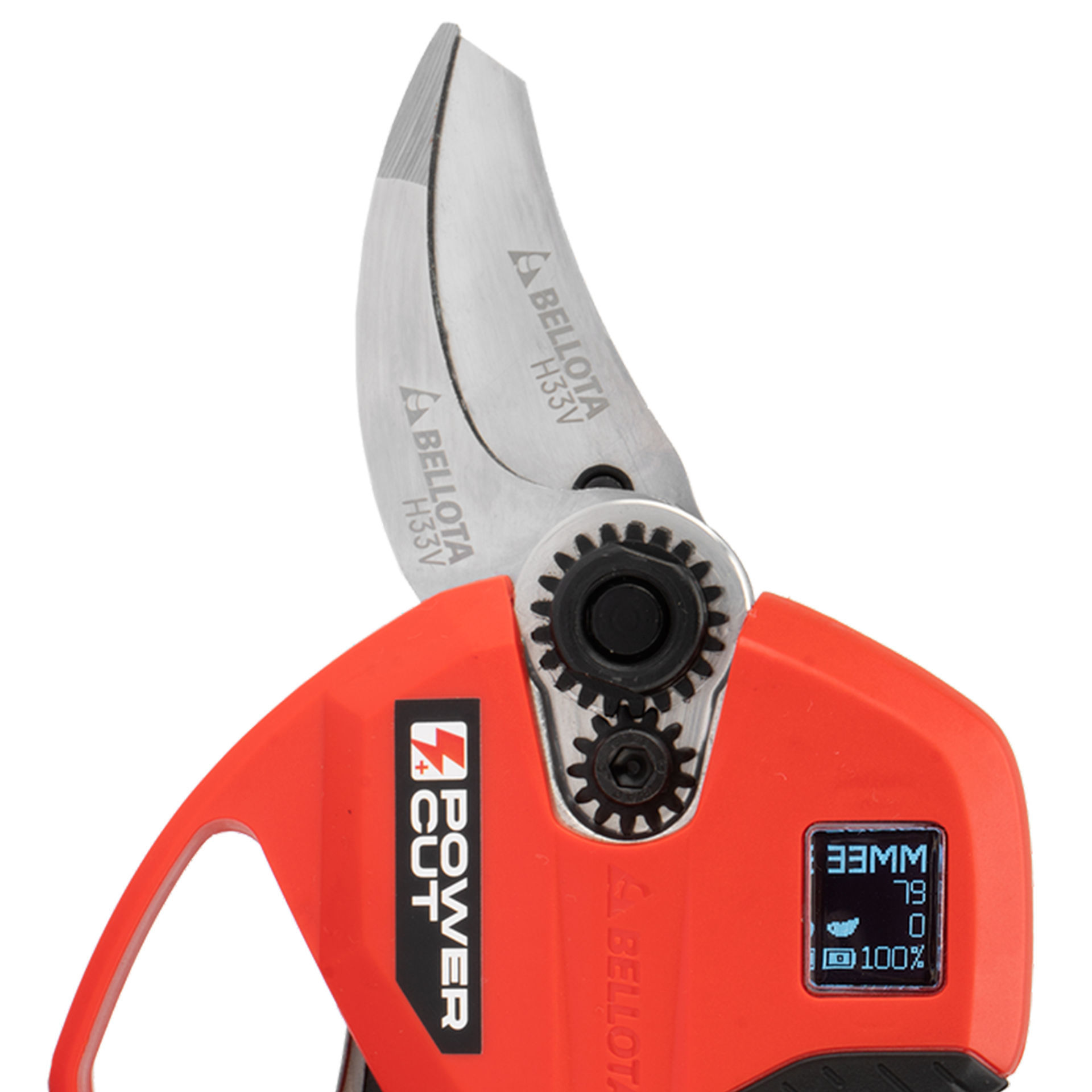 Tijera de poda eléctrica POWER CUT, especial Viña, con batería de Litio Ion y un corte máximo de 33mm de diámetro.