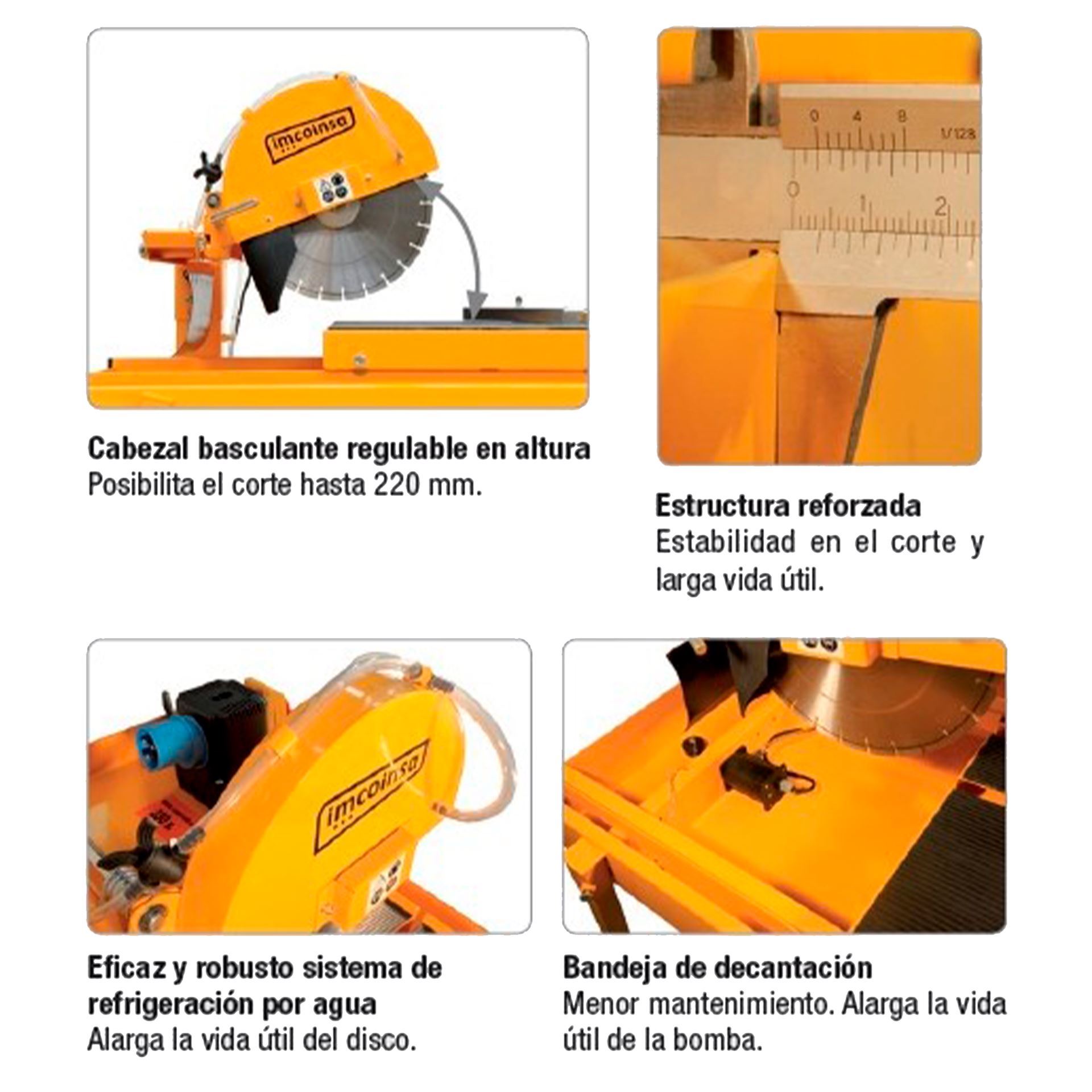 Sobria y resistente estructura principal, que garantiza la estabilidad del equipo durante la ejecución del corte.